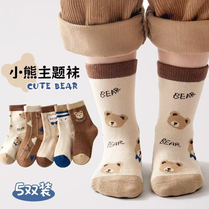 秋冬季儿童中筒加厚袜子5双