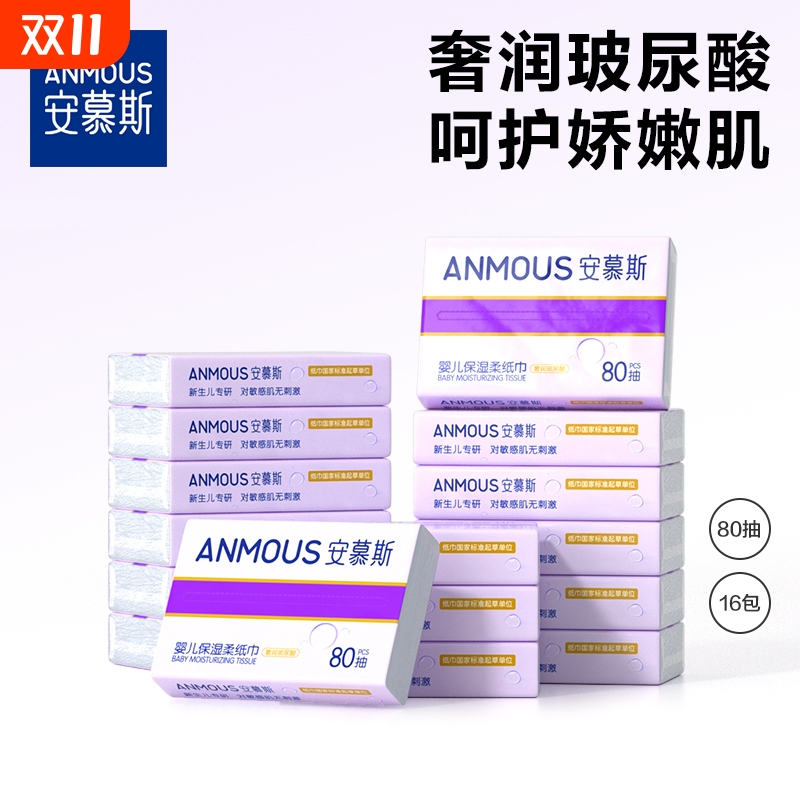 安慕斯婴儿保湿纸云柔巾80抽*16包