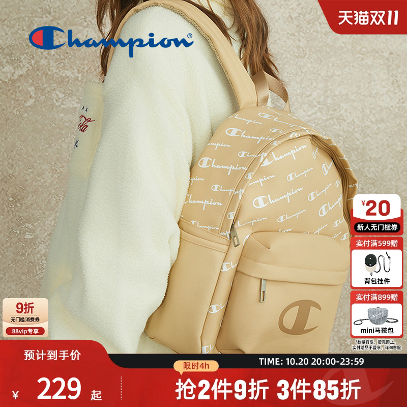 Champion老花双肩包白色大容量男女适用