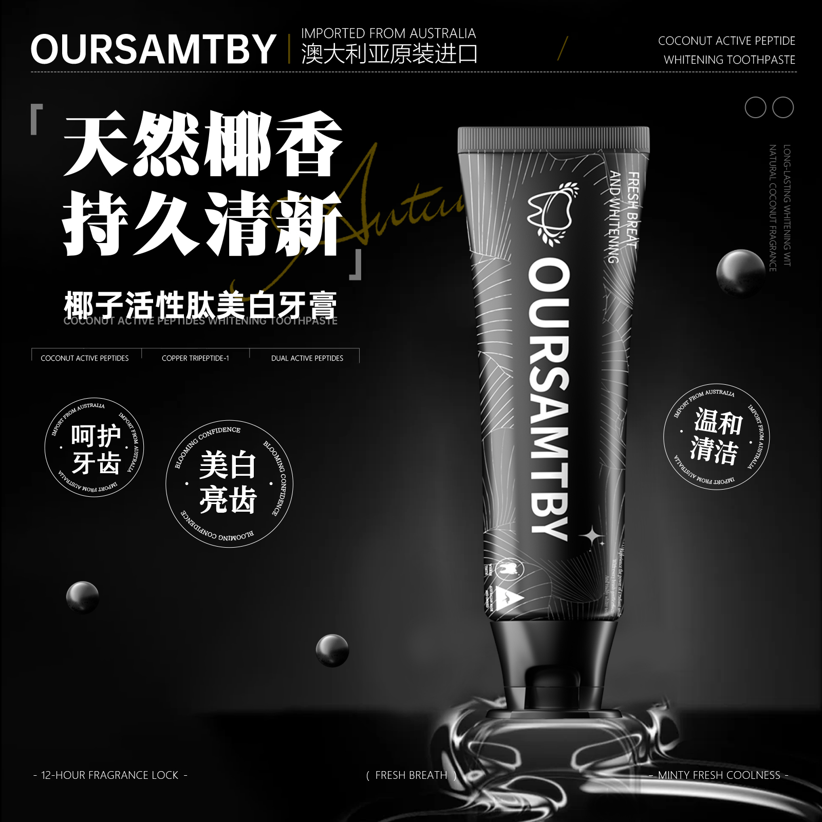 核心卖点:活性肽科技+天然椰子精华,温和美白不伤牙