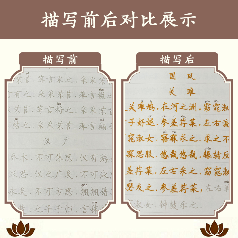 环保印刷:油墨清晰无异味,长时间临摹不伤眼,老人、孩子均可安心使用。