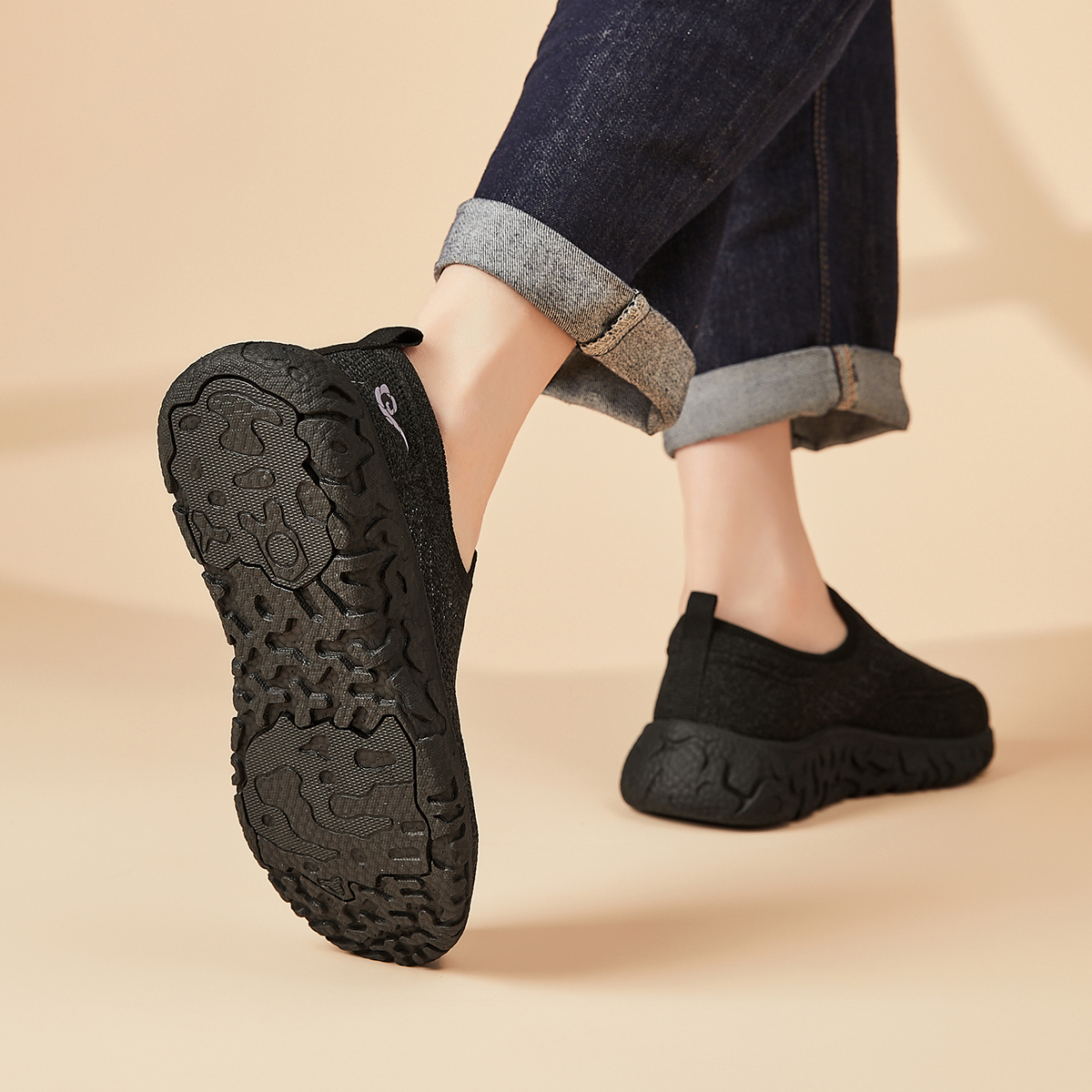 这款妈妈鞋采用高密纱线一体编织工艺,纱线细密如第二层肌肤,贴合脚型却不束缚。网面结构形成无数透气微孔,夏季行走时空气自由流通,告别闷热黏腻感。鞋底选用立体软弹EVA材质,经特殊发泡工艺处理,回弹力提升30%,每一步都像踩在云朵上,久走不累。鞋头与后跟处加入柔性TPU加固片,既保持轻盈感,又防止鞋型塌陷,延长使用寿命。
