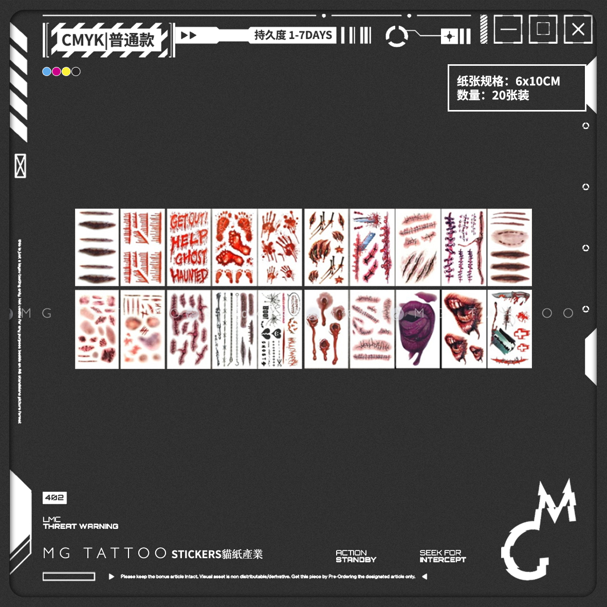 【万圣节氛围感神器】20张仿真伤疤纹身贴——无毒无痛,轻松打造惊悚吸血鬼妆容