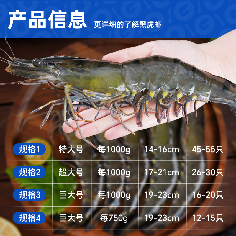 ✅ 规格超值:单只14-16cm巨型黑虎虾,2斤装净重1000g,比市场同规格产品价格低30%!