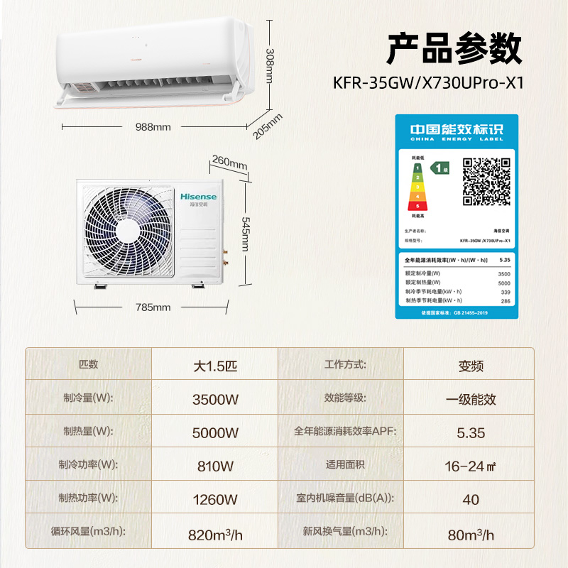 海信新风空调大1.5匹增氧新风X7Pro——会呼吸的空调,让家更懂健康