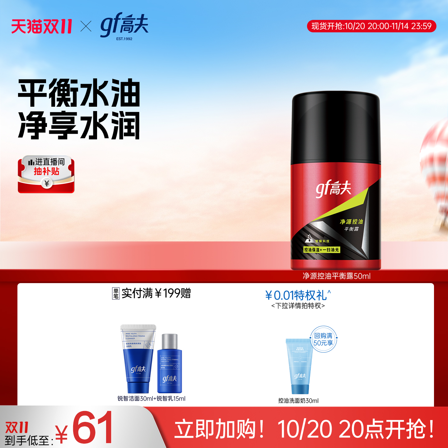 高夫男士乳液净源控油平衡露补水保湿乳护肤套组——油皮救星,清爽一夏