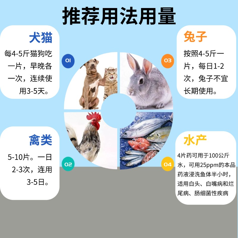 土霉素片以广谱抗菌的土霉素为核心成分,专为家禽(鸡鸭)、水族(观赏鱼、锦鲤、乌龟)、宠物(狗狗、鹦鹉)设计,针对以下场景提供精准解决方案: