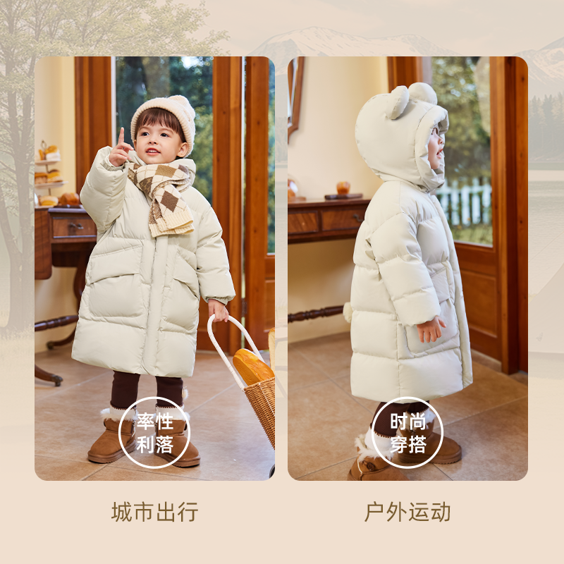 尺码建议:按身高+5cm选择,预留成长空间,中长款设计建议搭配打底裤防止钻风。