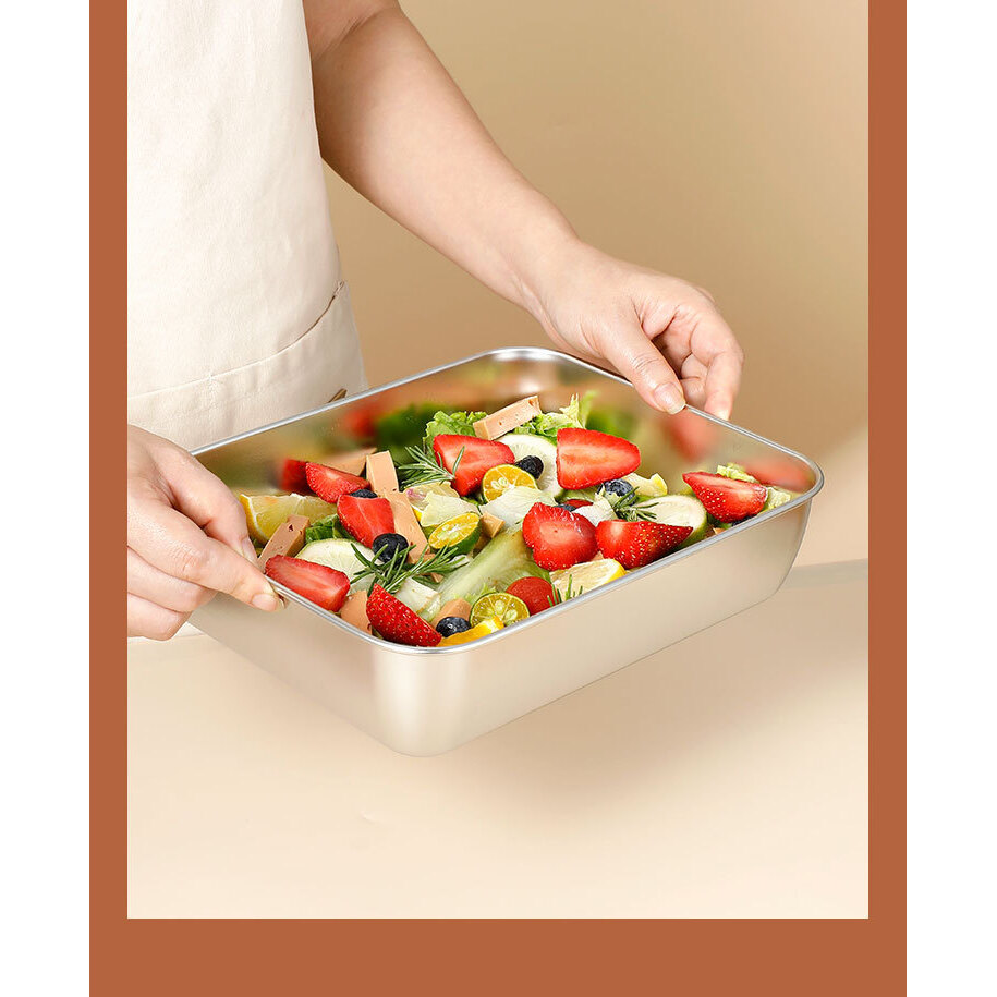 不锈钢保鲜盒分装盘3件组 | 厨房收纳+场景多用神器