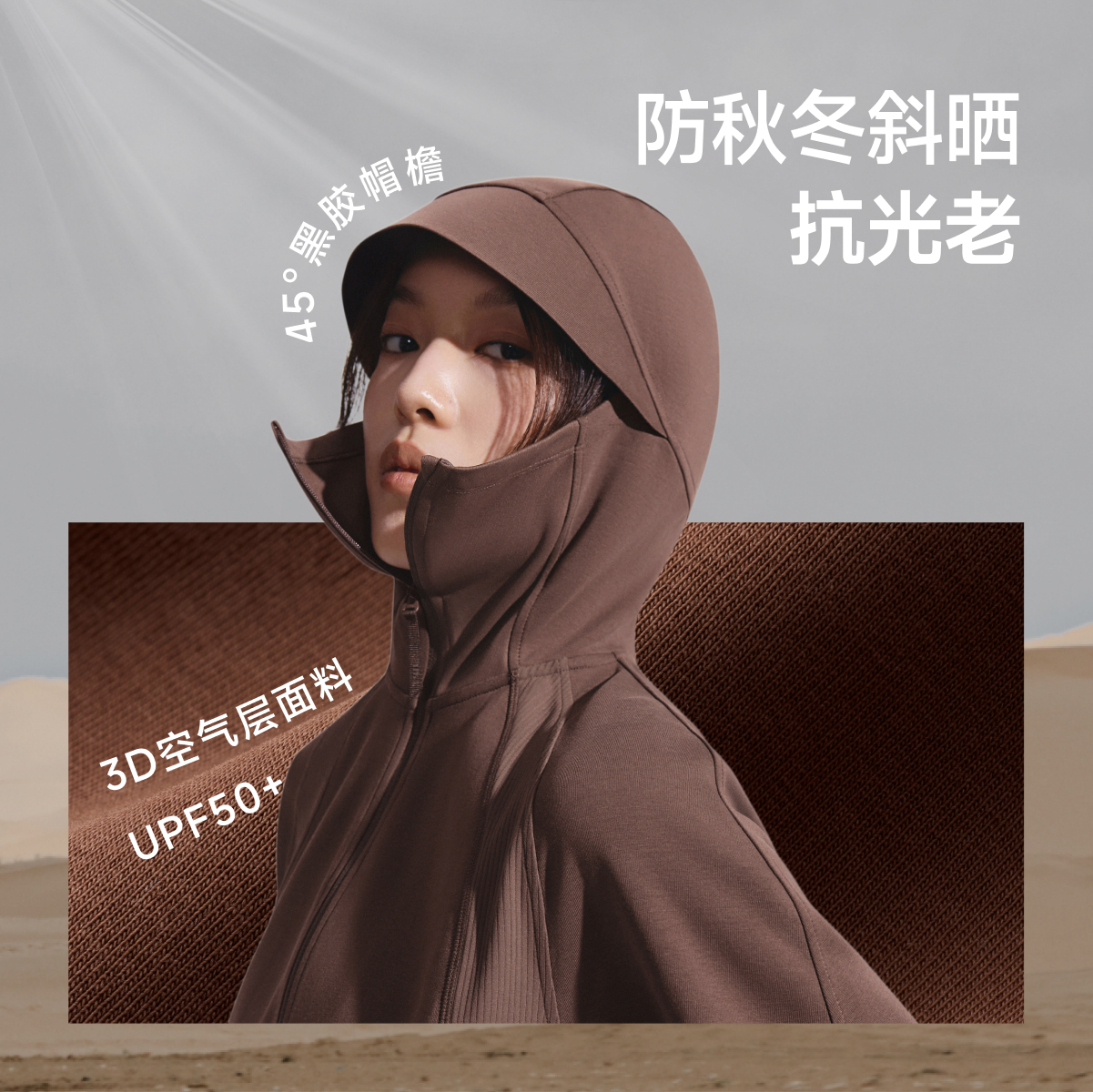 地铁冷气太足?外套一裹秒变防风层,到公司脱帽变利落立领,防晒防风两不误。