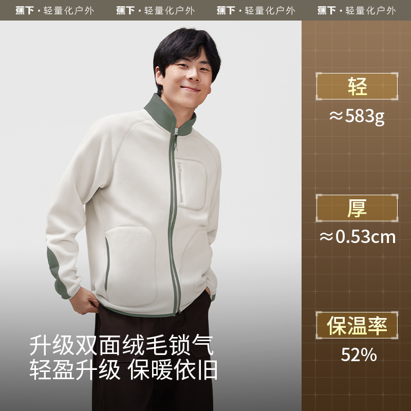 蕉下男士万粒绒外套摇粒绒:通勤户外双场景保暖神器