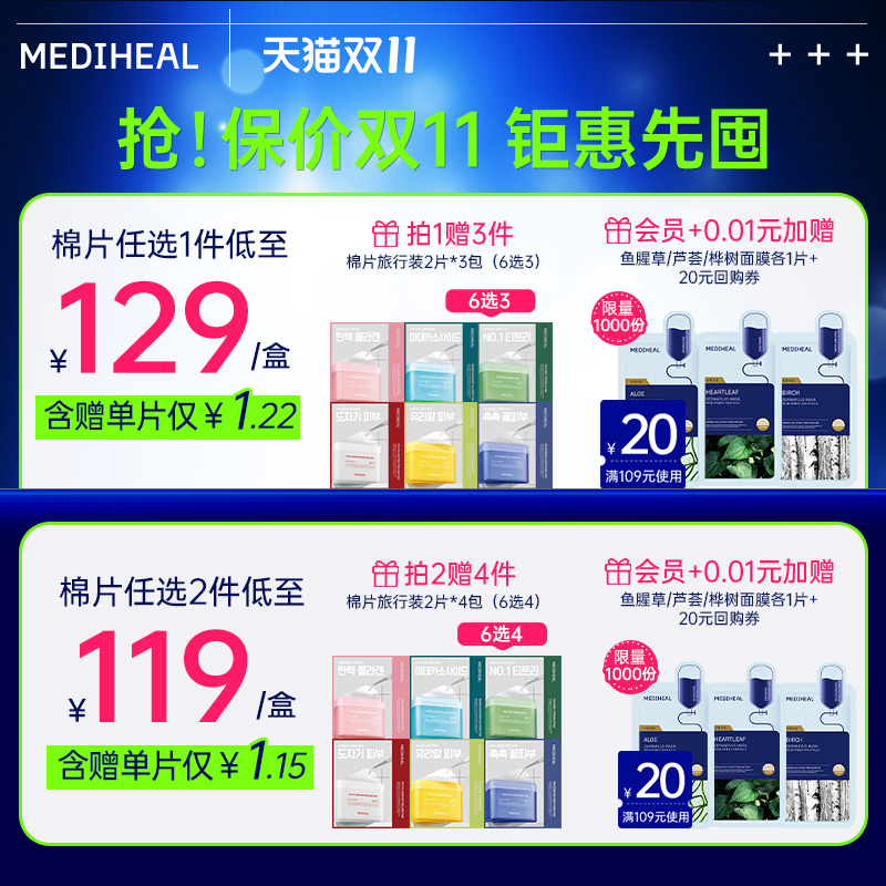 【双11抢先加购,预售赠礼升级】 下单即赠2包棉片(4片),预售加赠1包,到手共7片!美迪惠尔官方旗舰店正品,修红修印、舒缓水润,妆前急救一步到位,告别卡粉、泛红困扰!