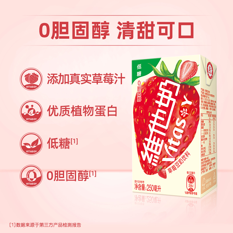 产品详情:维他奶低糖草莓豆奶250mlx24——阳光豆香与草莓清甜的健康邂逅