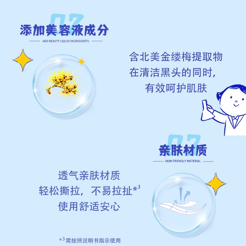 医用级无纺布膜布:采用日本花王专利技术,膜布厚度仅0.2mm,贴合鼻翼弧度,撕拉时减少对皮肤的拉扯感,敏感肌亦可安心使用。