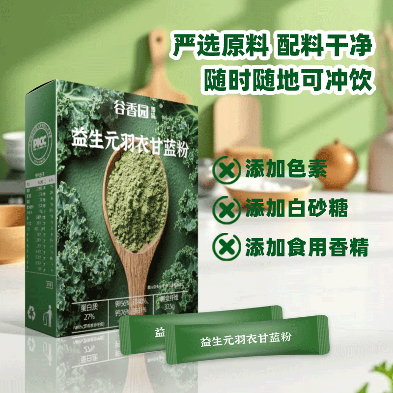 对比维度 | 谷香园益生元羽衣甘蓝粉 | 普通羽衣甘蓝粉 |