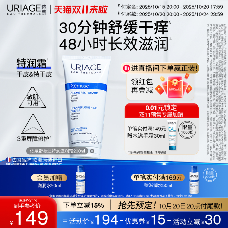秋冬寒风、空调房、频繁洗脸……干燥肌的「灾难季」来了!依泉特润霜专为干敏肌研发,以天然等渗矿泉水为基底,搭配牛油果树果脂+透明质酸钠,形成仿生皮脂膜,深层补水的同时锁住水分,缓解换季泛红、起皮、紧绷,让肌肤从「沙漠」变「绿洲」。