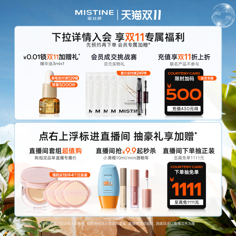【卷后29;淘金币加购抵扣6.59,88vip后到手20.8元】Mistine蜜丝婷奢润粉底液,上脸通透,妆效立体,光感自然,水润持妆,服帖高遮瑕,原生高质感!
