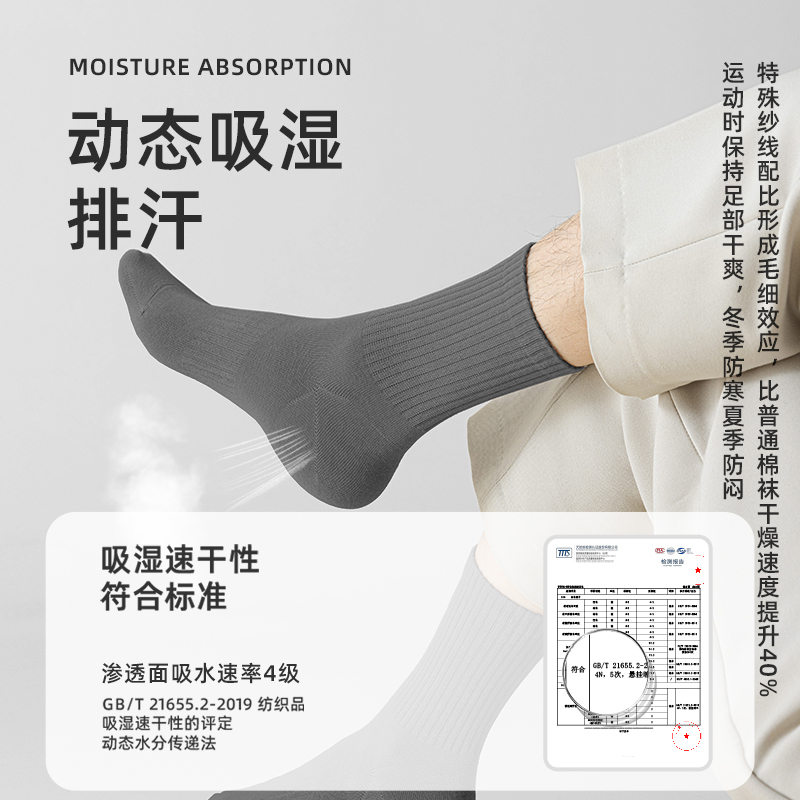 - 精选新疆长绒棉(含棉量≥80%),柔软亲肤不扎肉,吸汗速度比普通棉袜快2倍!