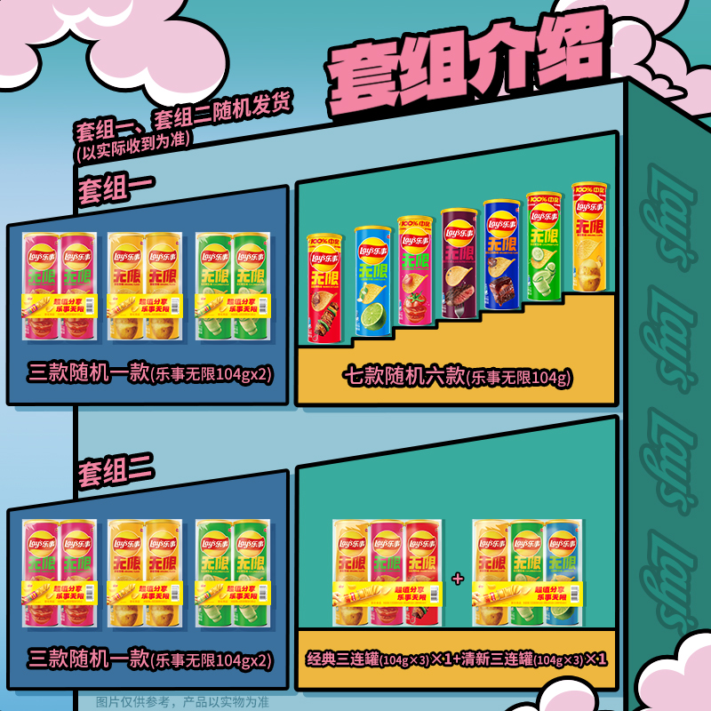 A:仅外观不同,内含薯片规格、口味完全一致,均保证正品品质。