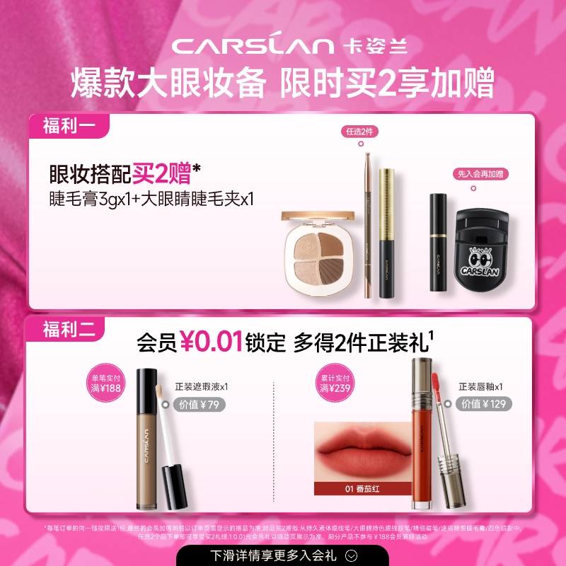 赠品升级:下单即赠3g迷你睫毛膏(便携补妆)+大眼睛睫毛夹(价值29元),新手入门套装一步到位。