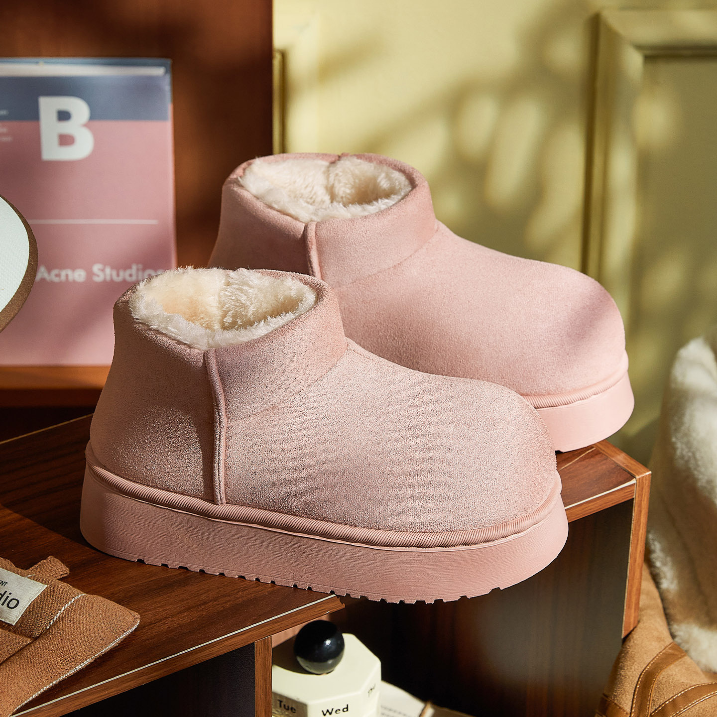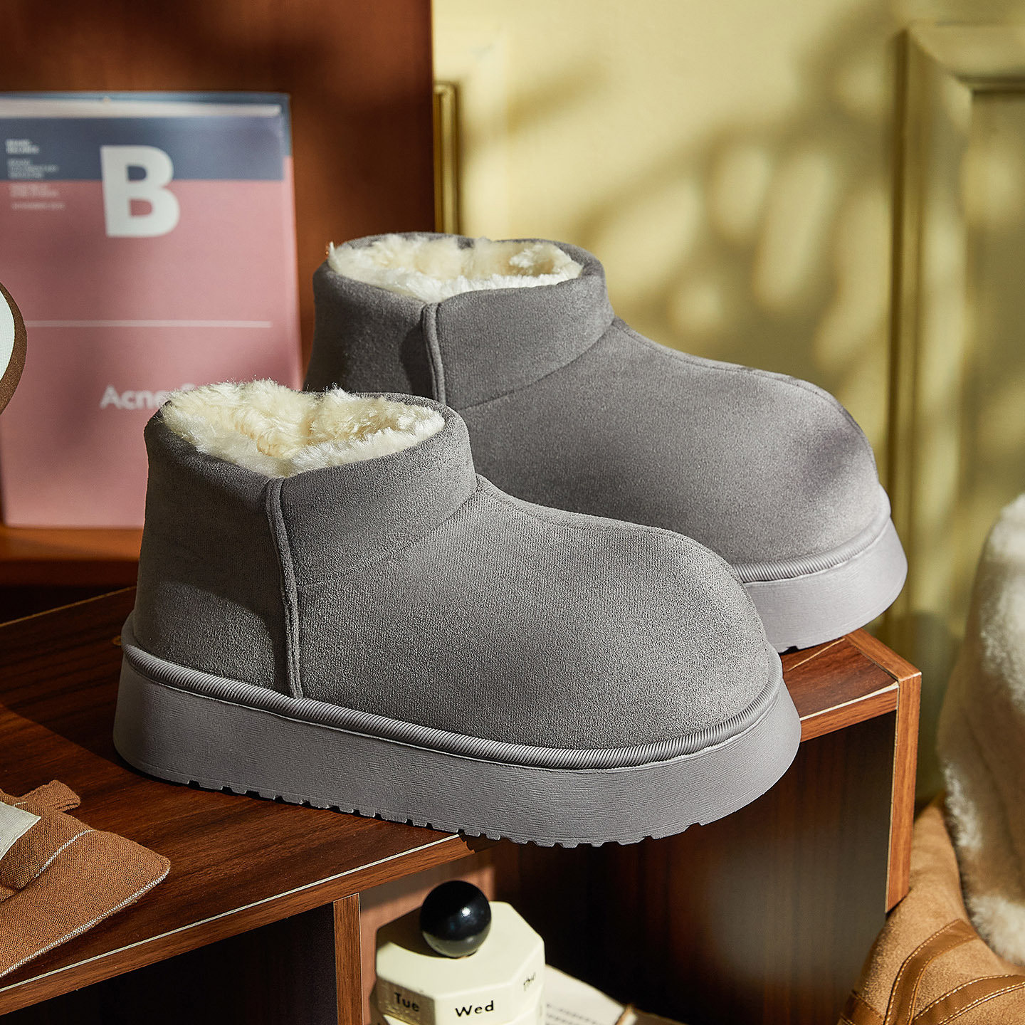 内里覆盖加密毛绒,触感细腻不掉毛,锁温效果远超普通雪地靴,-10℃低温也能轻松应对。