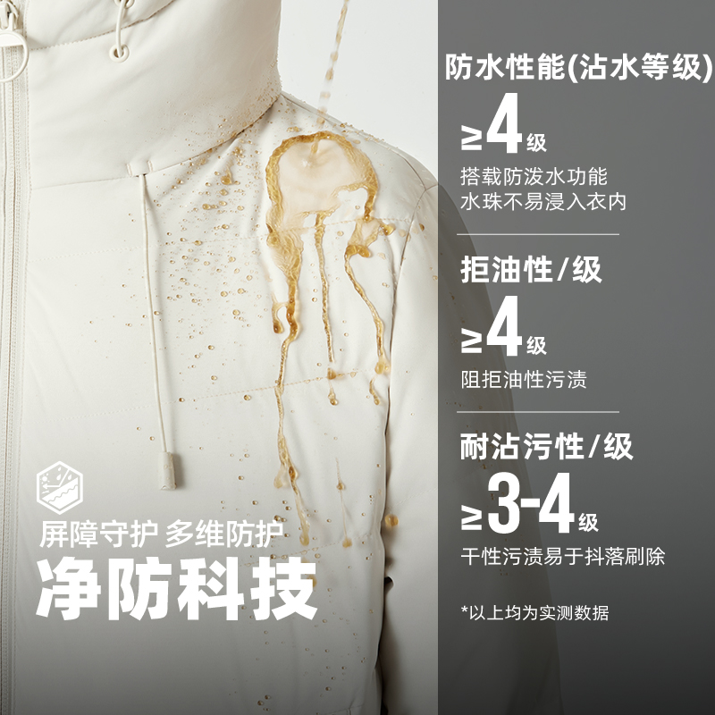 采用高密度防风防水防油涂层,雨水滴落瞬间滑落,油渍一擦即净,日常通勤或户外活动无需频繁清洗,尤其适合北方冬季雪天或南方湿冷环境。实验室实测:面料经5000次摩擦测试后,三防性能仍保持95%以上,耐用性远超普通羽绒服。