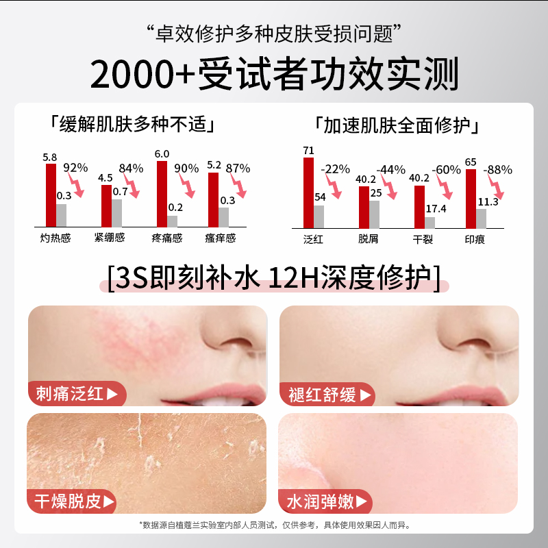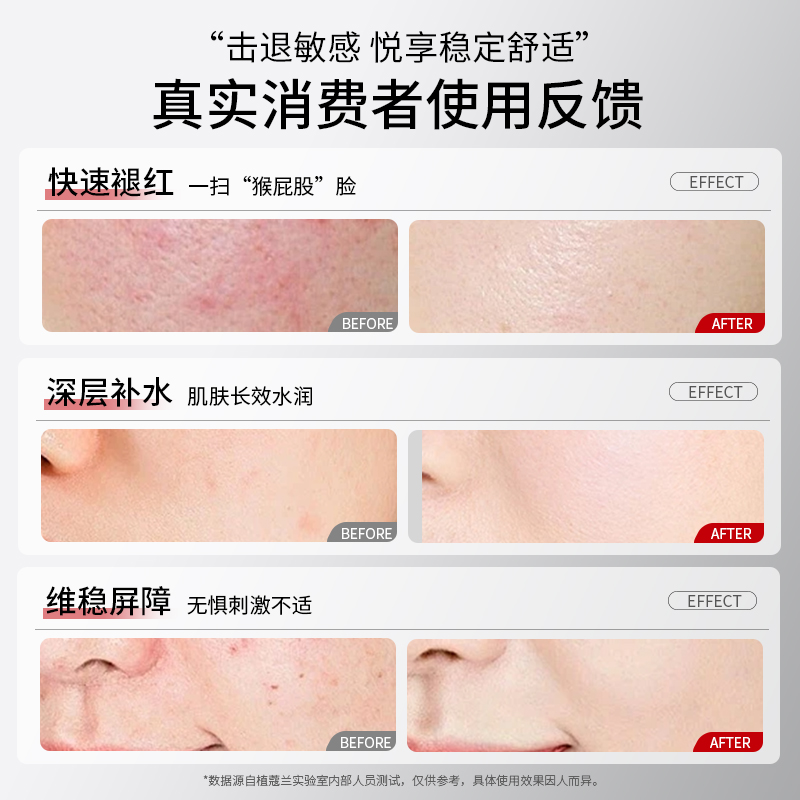 用户反馈:“换季脸红得像猴屁股,涂了三天就退下去了,修复力绝了!”