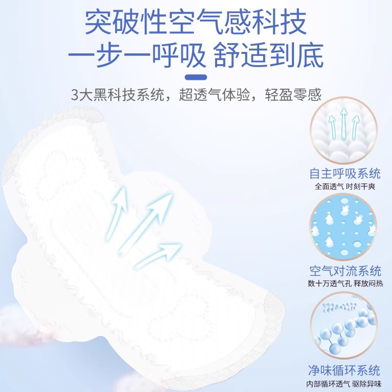 自由点采用升级透气Air棉,以3D云朵触感黑科技重构卫生巾表层。0.1cm超薄芯体中嵌入百万级透气微孔,空气流通效率提升300%,仿佛给私密处装了一台“隐形空调”。