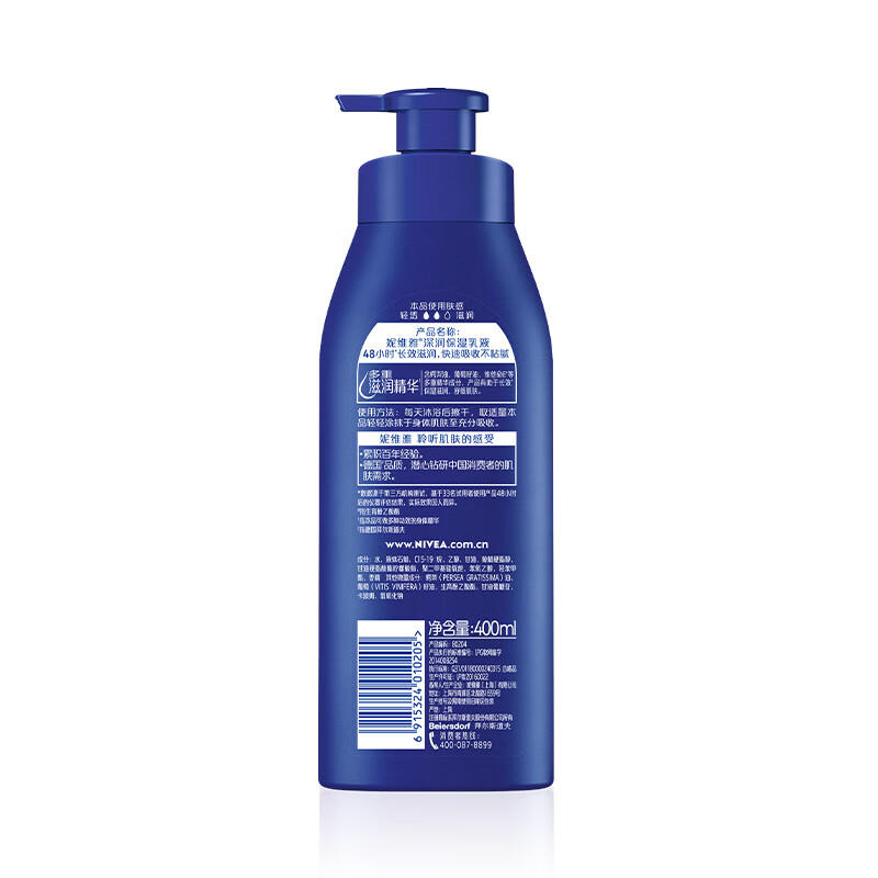对比普通身体乳:普通产品保湿时长约6-8小时,需频繁补涂;妮维雅蓝瓶通过实验室数据验证,保湿力持续48小时,减少重复护理步骤。