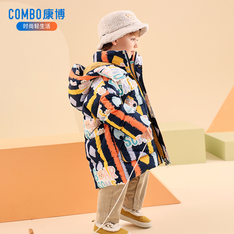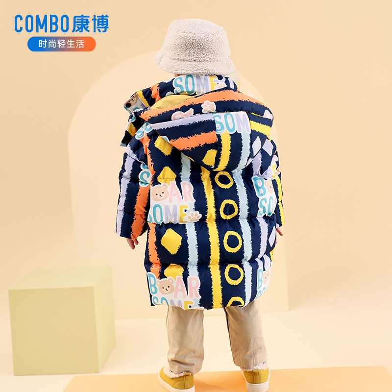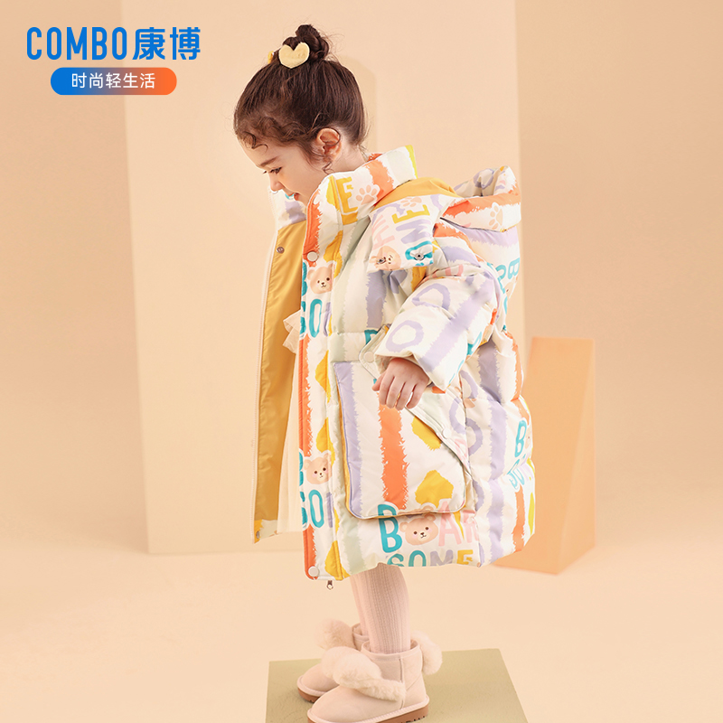 产品详情:康博加厚保暖洋气中长款羽绒服——冬日童趣与温暖的完美融合
