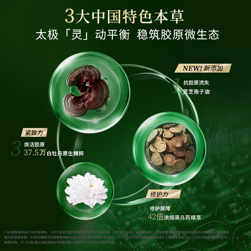 佰草集太极套装以“太极古方”为灵感,融合黑灵芝、白芍、人参等七大本草精粹,协同微囊包裹技术,将活性成分锁于“啵啵”爆珠中,触肤瞬间释放,直达肌底。水相含三重玻尿酸,构建立体补水网;乳相含胜肽复合物,促进胶原蛋白生成,实现“外补内生”的修护逻辑。