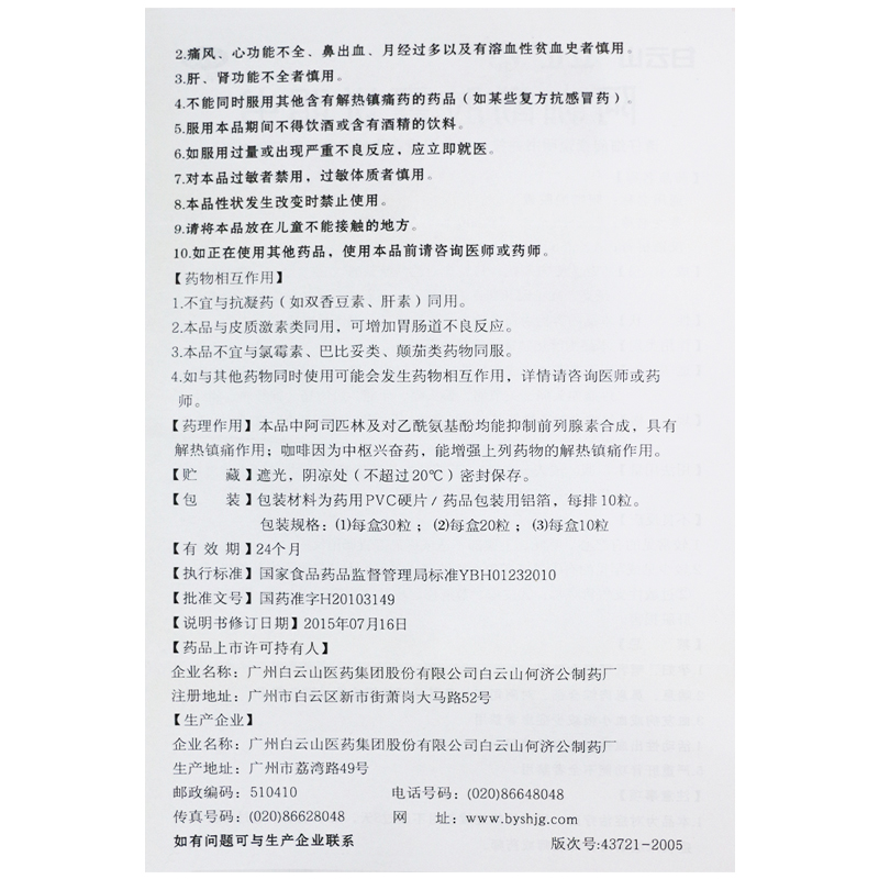 产品详情:白云山阿咖酚胶囊——您的家庭健康守护者