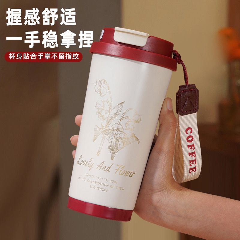 铃兰花316不锈钢保温杯 | 车载双饮咖啡杯 | 500ml大容量,通勤出游全天候锁温