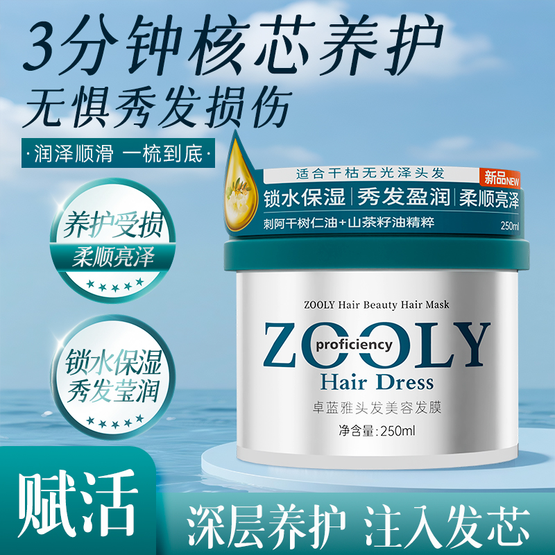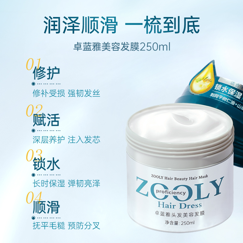 小贴士:搭配卓蓝雅同系列洗发水使用,效果更佳;若发质极度受损,可延长停留时间至5分钟。