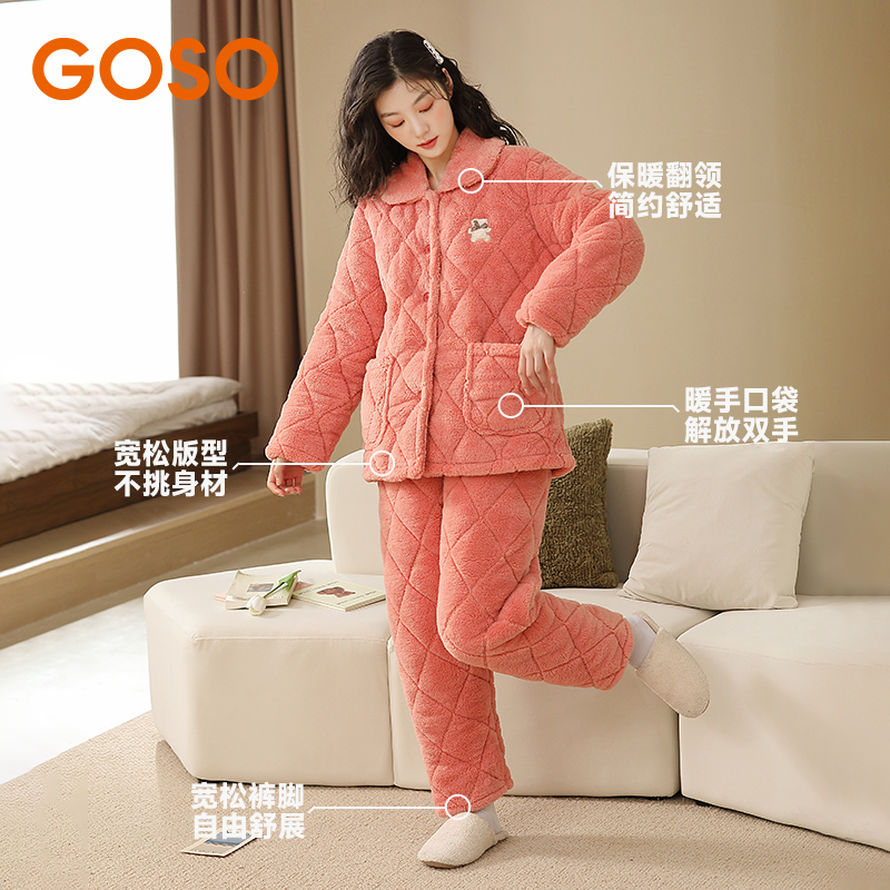 GOSO加厚三层夹棉家居服2025冬季新款|情侣宅家新标配,保暖与颜值兼得