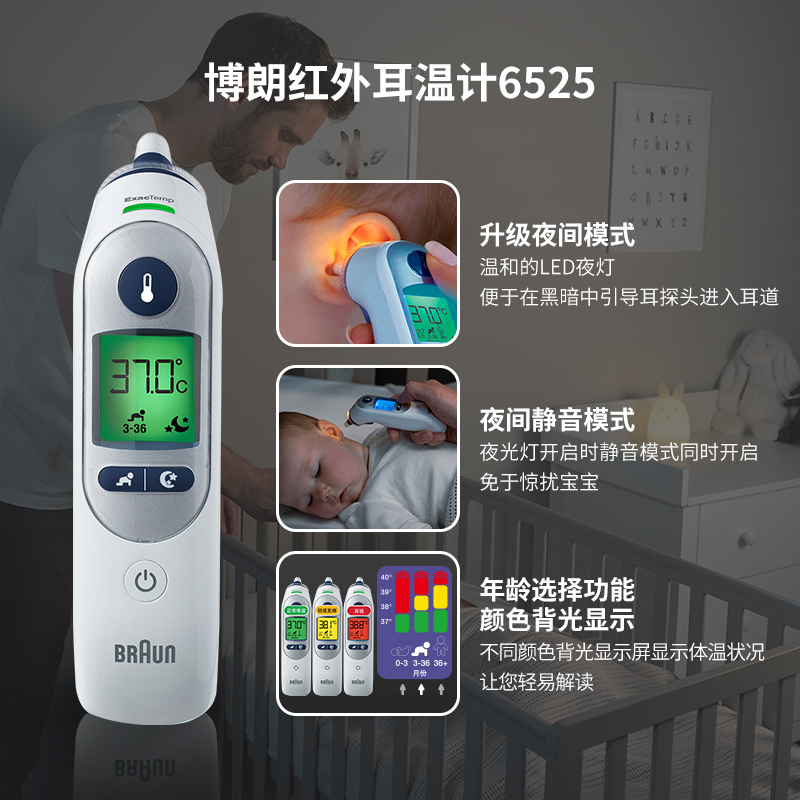 【博朗耳温枪6525升级版】儿童电子体温计——精准测温,守护宝贝健康每一刻