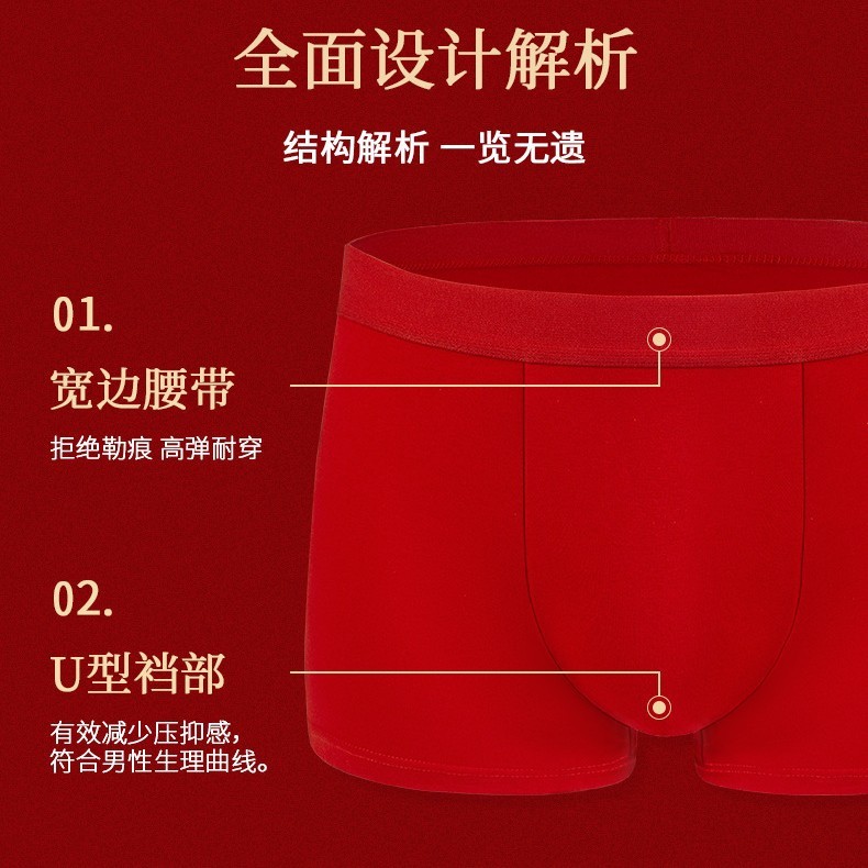【本命年必备】4条大红色抗菌男士平角内裤——结婚喜庆·本命年吉祥·舒适之选