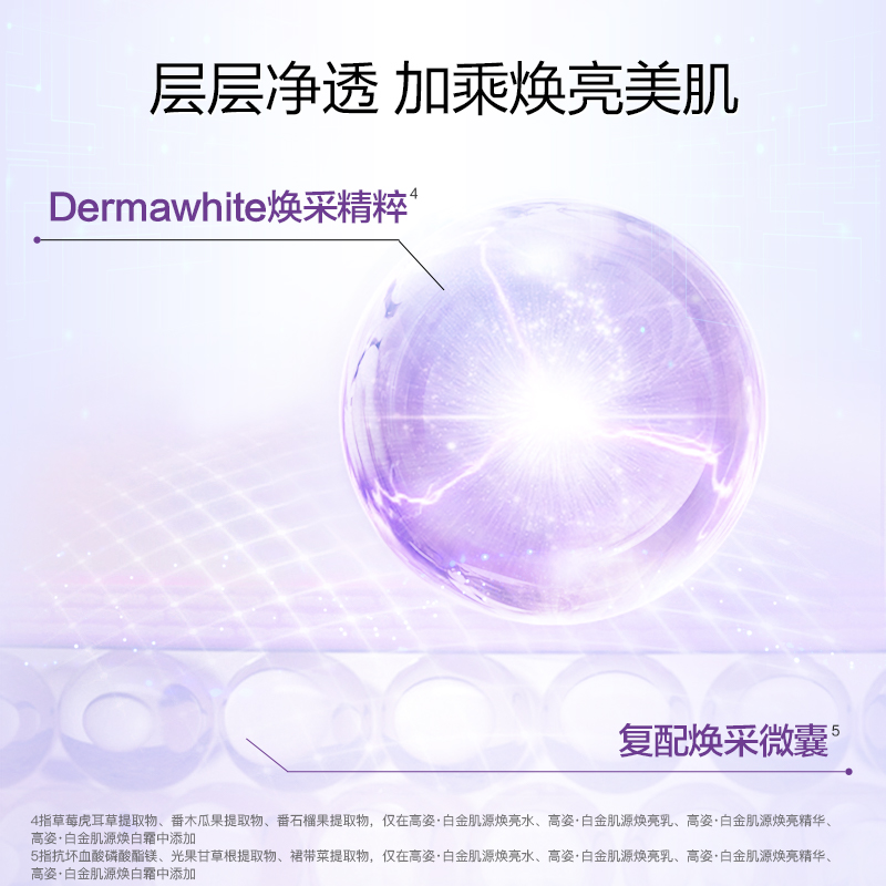 白金微囊包裹技术:活性成分低温锁鲜,避免传统美白产品刺激感,敏感肌友好。