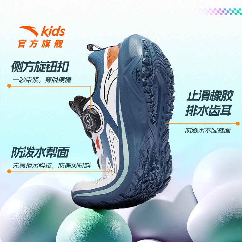 产品详情:安踏防泼水防滑耐磨中大童运动鞋——飞盾系列