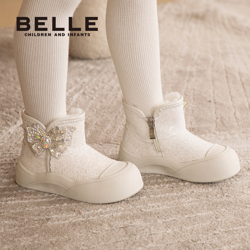 百丽童鞋女童公主雪地靴25秋冬新加绒棉靴:仙境小蝴蝶,温暖守护女宝的秋冬童话