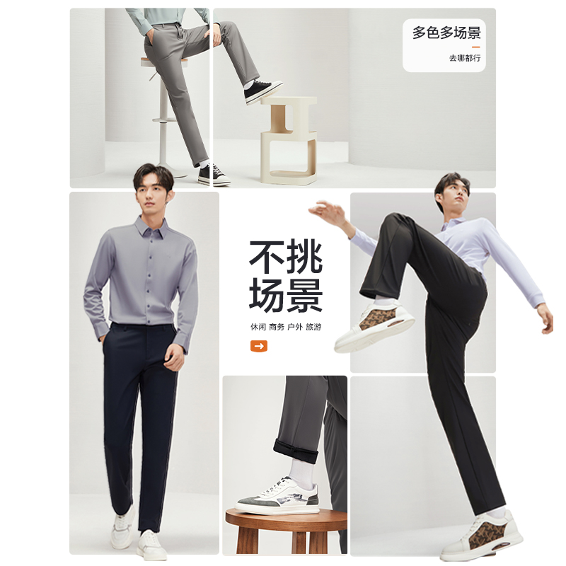 - 弹性纤维占比达15%,横向纵向双向拉伸,久坐不紧绷,蹲起无束缚,适合商务出差、长途驾驶等场景。