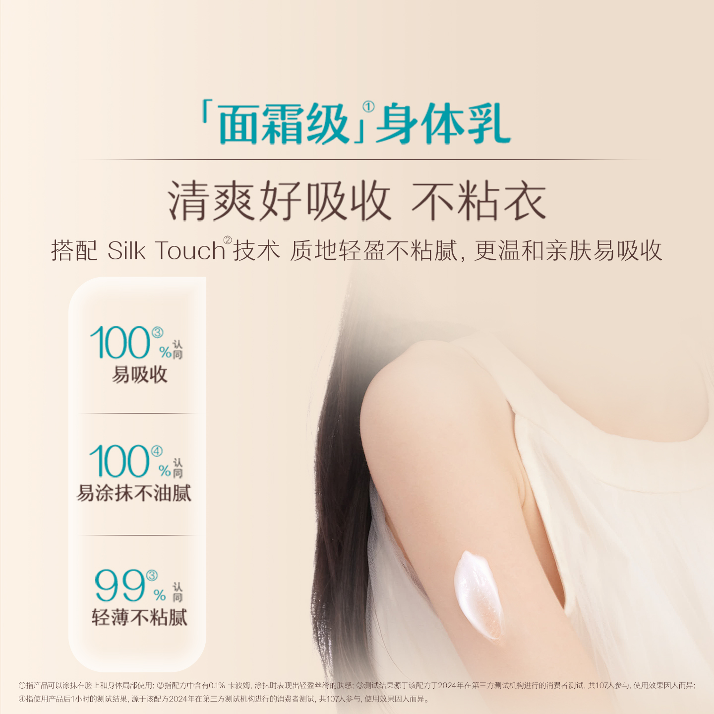深层保湿:24小时长效锁水,缓解干燥、起皮,皮肤嫩滑不黏腻