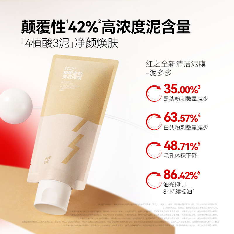 产品详情:红之植酸多效清洁泥膜——毛孔“大扫除”的温柔派