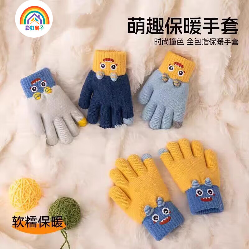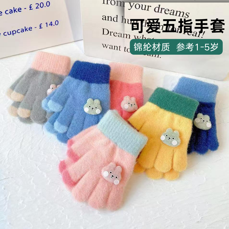 产品详情:儿童保暖针织手套 五指分指 冬季防寒宝宝手套