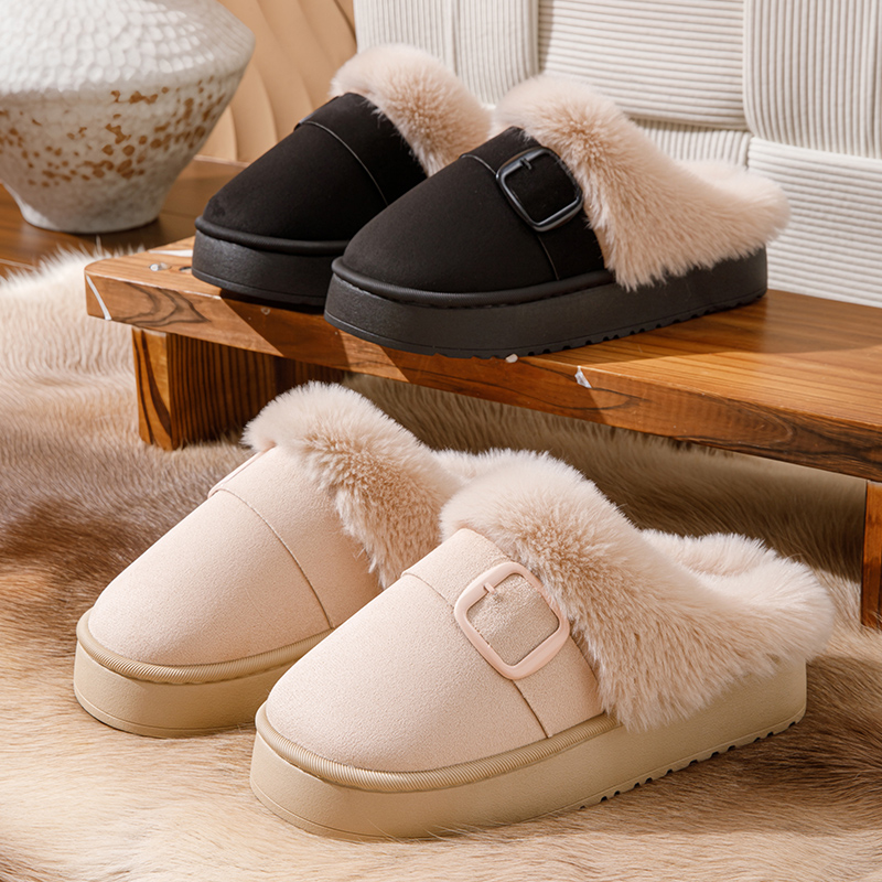 2025秋冬加绒保暖室内居家网红简约毛口拖鞋——暖足新宠,舒适过冬的懒人神器