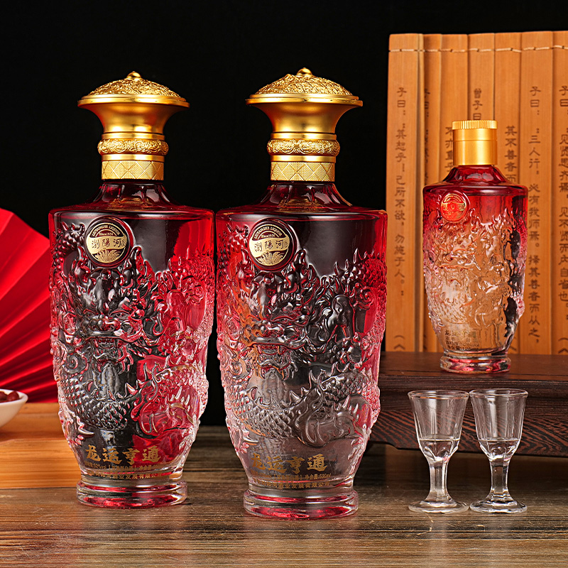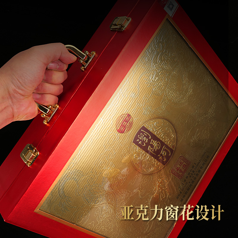三提礼盒设计,外盒采用烫金工艺与祥云纹饰,寓意“龙运亨通”,内含6瓶500ml正装酒+3瓶125ml试喝装+6个定制酒杯,搭配精致手提袋,中秋、春节、商务宴请等场景送礼体面大气。