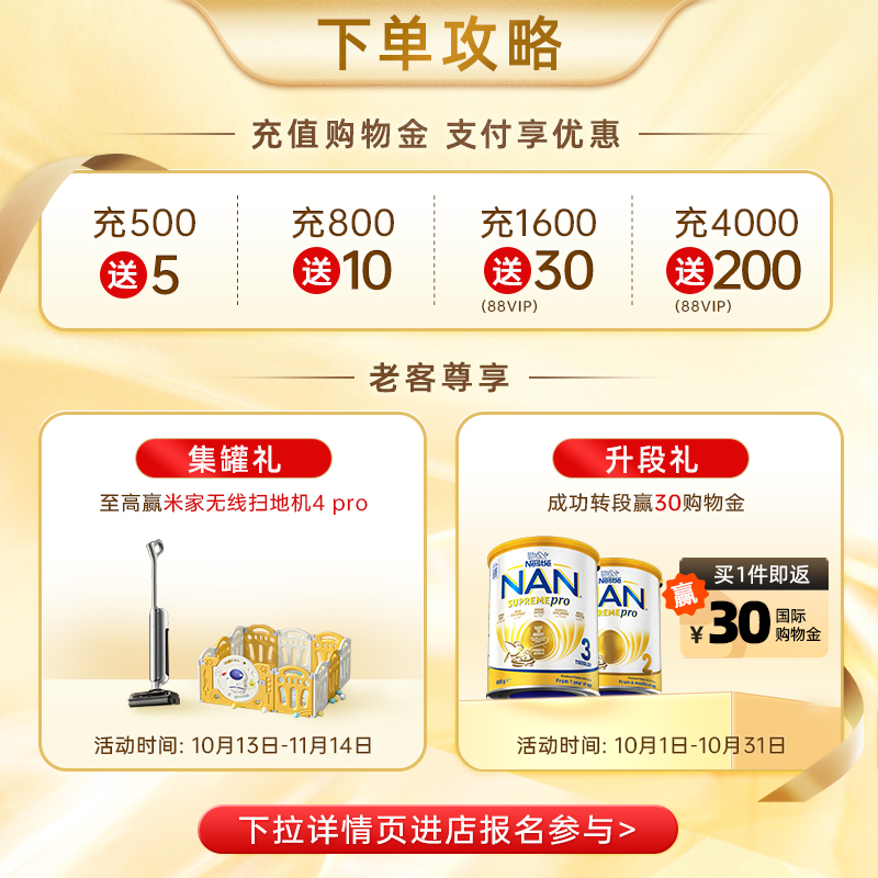 - DHA+ARA:支持大脑和视力发育,让宝宝更聪明、眼睛更明亮。 - 钙+维生素D:强化骨骼发育,助力宝宝长高个。 - 铁+锌:预防缺铁性贫血,提升免疫力,宝宝活力满满。3. 场景化适配,省心之选
