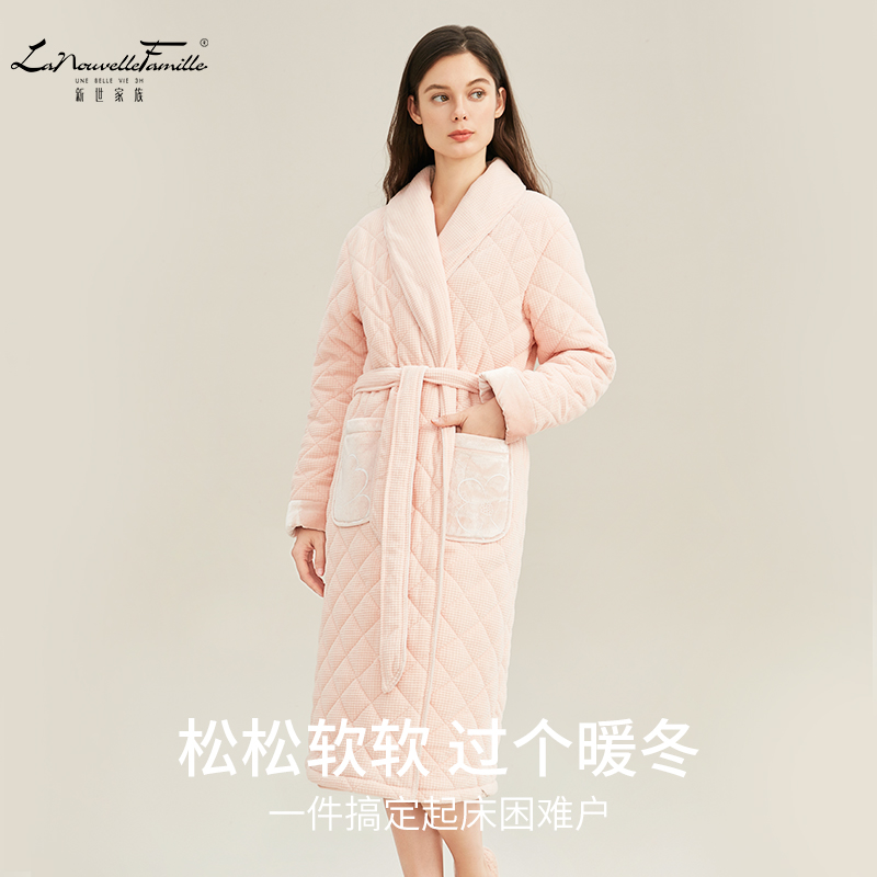 新世家族!专柜同款加厚夹棉复合绒睡袍——冬日宅家的温暖拥抱