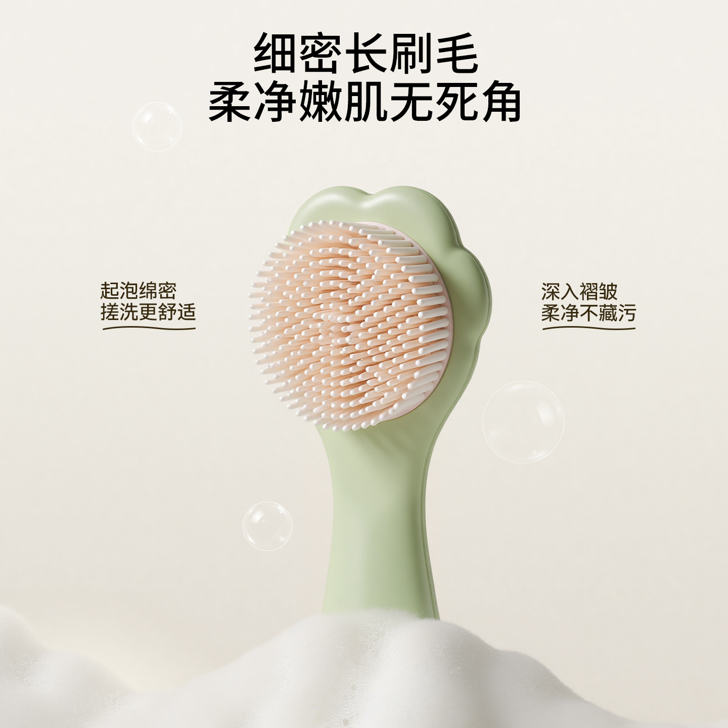 | 清洁力 | 细密刷毛深入褶皱 | 表面吸附力弱 | 摩擦力强易伤肤 |