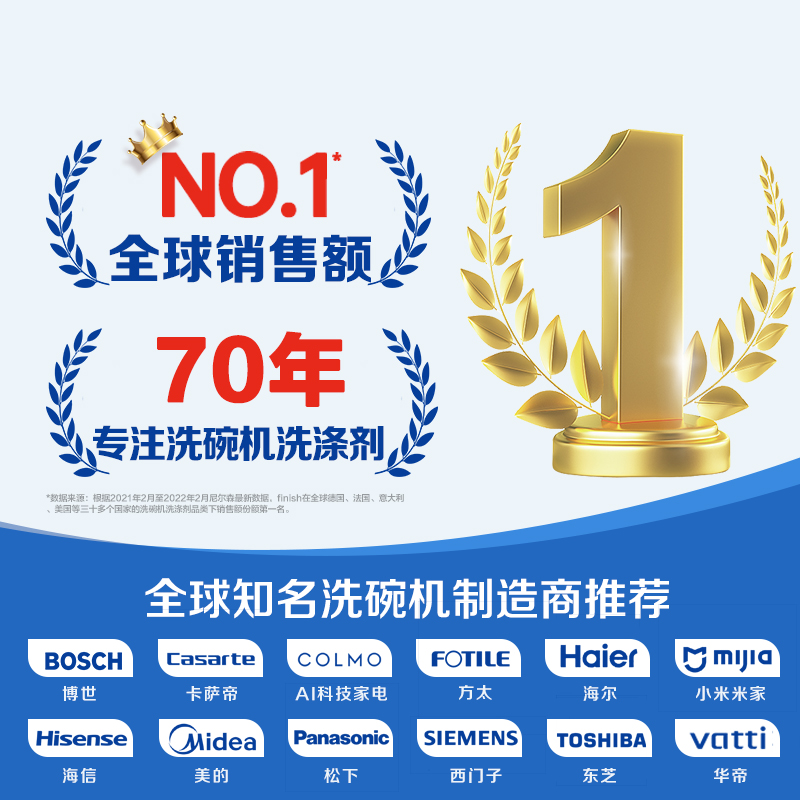 看品牌:finish亮碟是洗碗机专用洗涤剂领域的“老字号”,口碑和品质有保障(哪个牌子好?选它就对了!)。